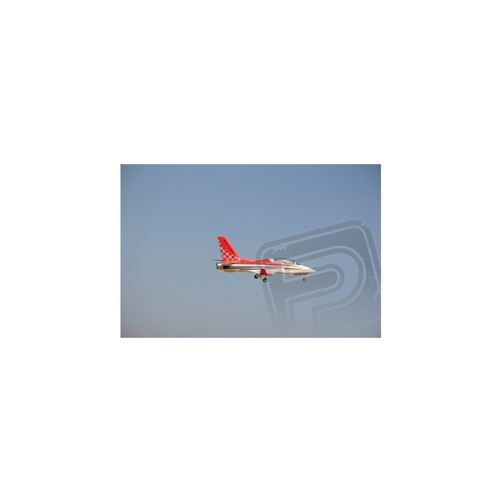 ARF készlet félig makett EPP hab sportrepülőgép 90mm-es fúvókával, AC motorral, 80A vezérlővel, 8A UBEC-vel, szervókkal és elektromos behúzható futóművel. Az áramellátáshoz 6S LiPo 5000 mAh.