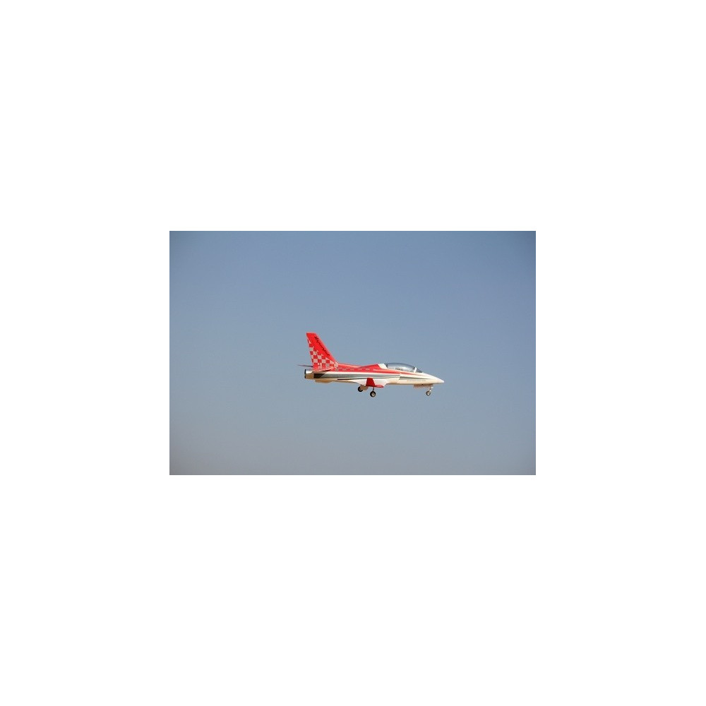 ARF készlet félig makett EPP hab sportrepülőgép 90mm-es fúvókával, AC motorral, 80A vezérlővel, 8A UBEC-vel, szervókkal és elektromos behúzható futóművel. Az áramellátáshoz 6S LiPo 5000 mAh.