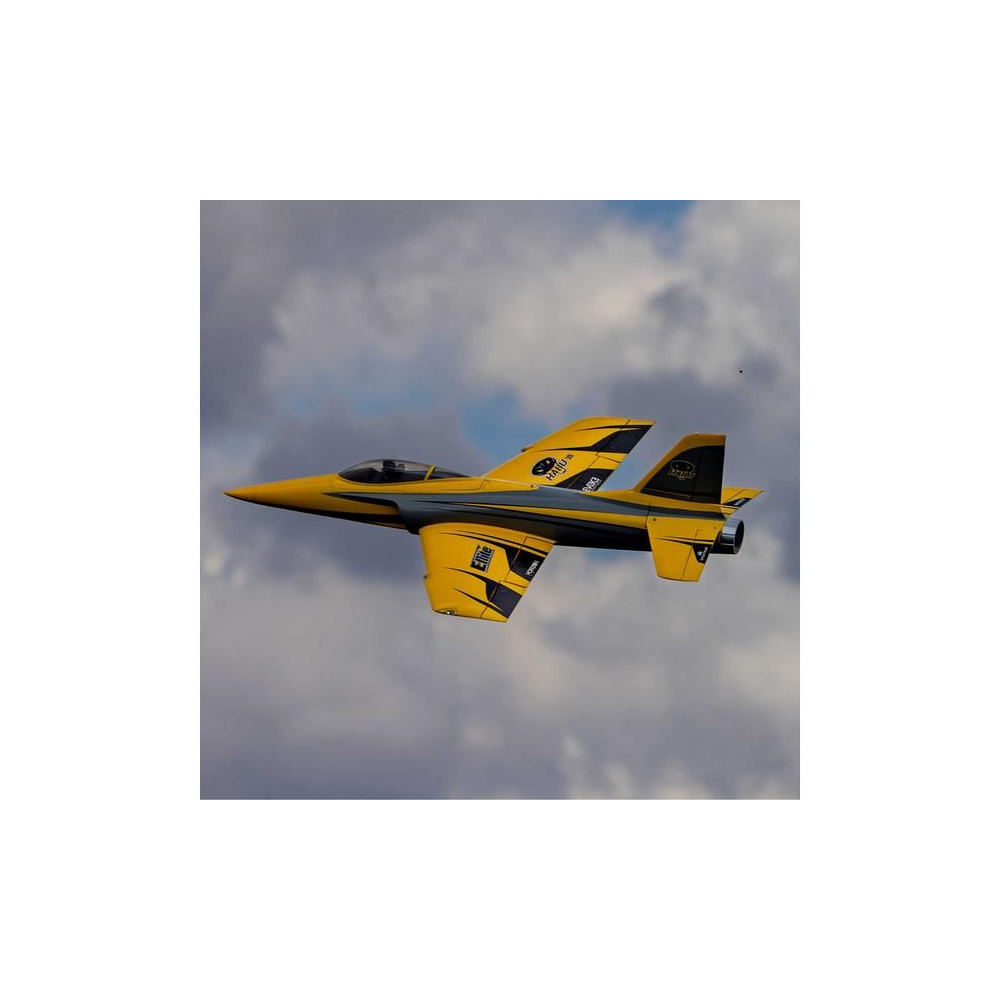 A modell lelke egy erőteljes, 12 lapátos ventilátorral ellátott fúvó, amely egy szakértők által tervezett légcsatornával együtt kiváló tolóerőt és autentikus, turbinaszerű hangzást biztosít állyukak nélkül. A Habu SX akár 190 km/h maximális sebességgel képes vízszintes repülésre, és lenyűgöző függőleges teljesítménnyel rendelkezik. Az összeszereléshez nincs szükség ragasztóra, az egy darabból álló szárnyat csavarokkal rögzítjük, akárcsak a magasságot, amelyet az irányjelzővel egy egységben szerelsz össze. Az EPO kompozit repülőgéptörzs elkészült, ahogy az összes alkatrész is minőségi festéssel rendelkezik. A nagy felső fedél megkönnyíti az akkumulátor behelyezését, és a műanyag peremmel nem sérül. Nyolc gyárilag beépített digitális szervomotor csatlakozik gömbcsuklós kormánykarokhoz az éles és precíz vezérlés érdekében. A behúzható alváz hitelességet kölcsönöz és csökkenti a légellenállást. Ezenkívül csillapító rendszerrel is fel van szerelve, így könnyedén repülhetsz vele fűből és más felületekről is.
