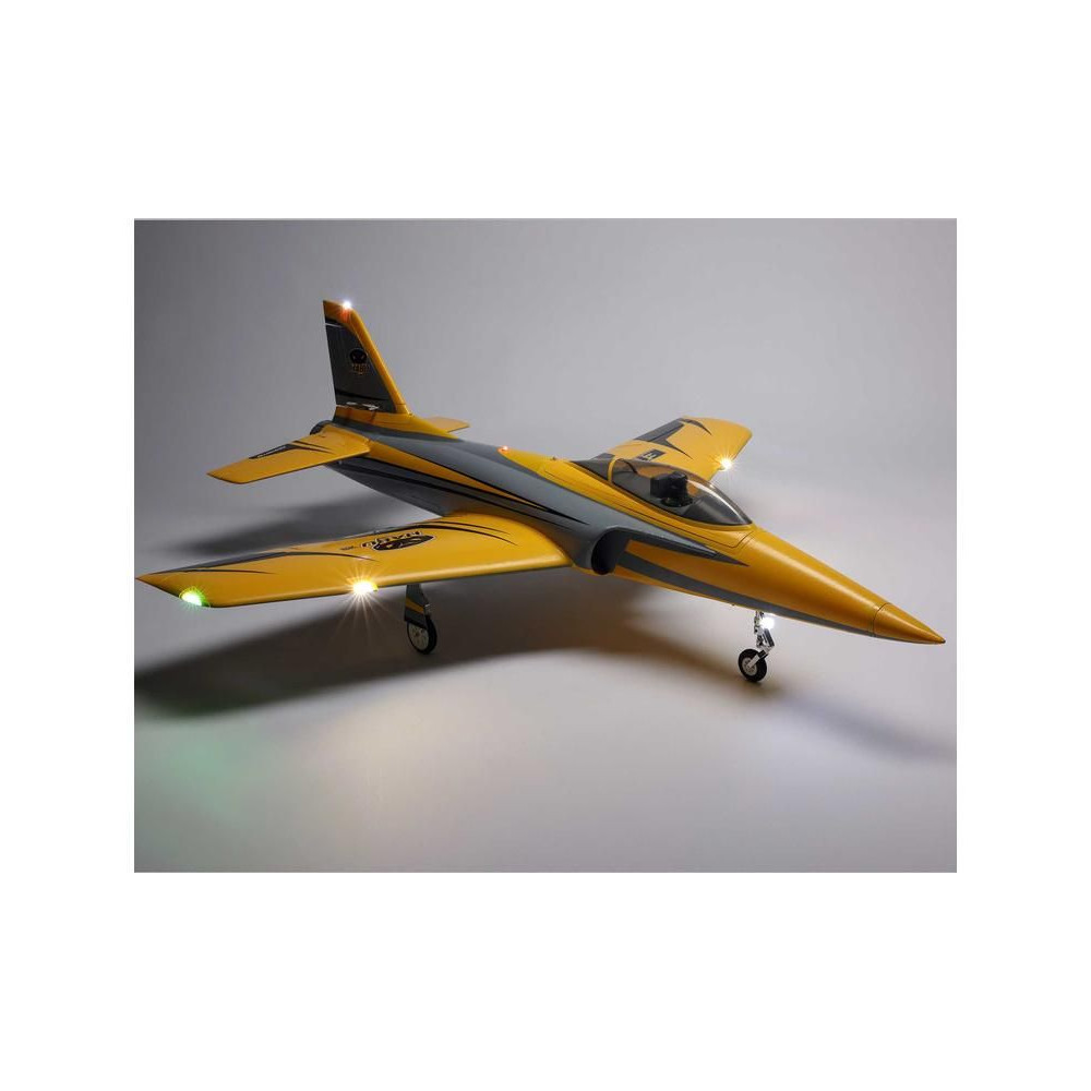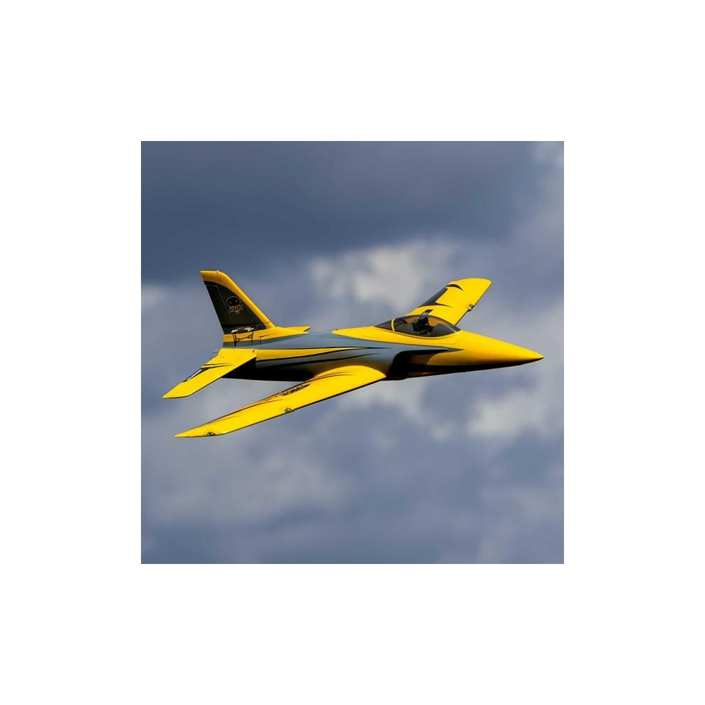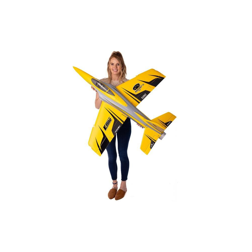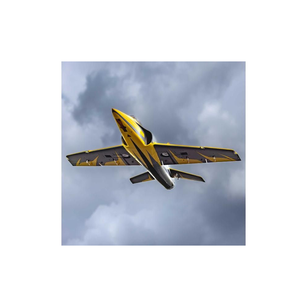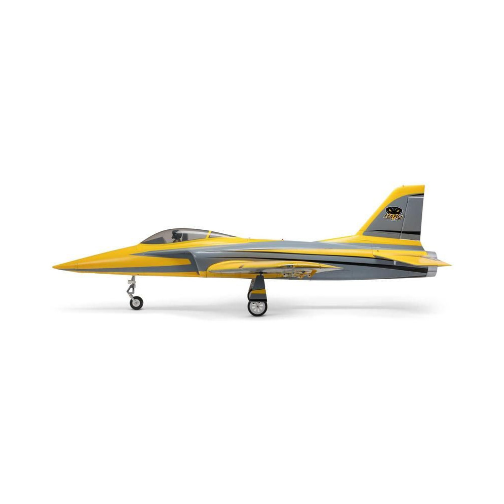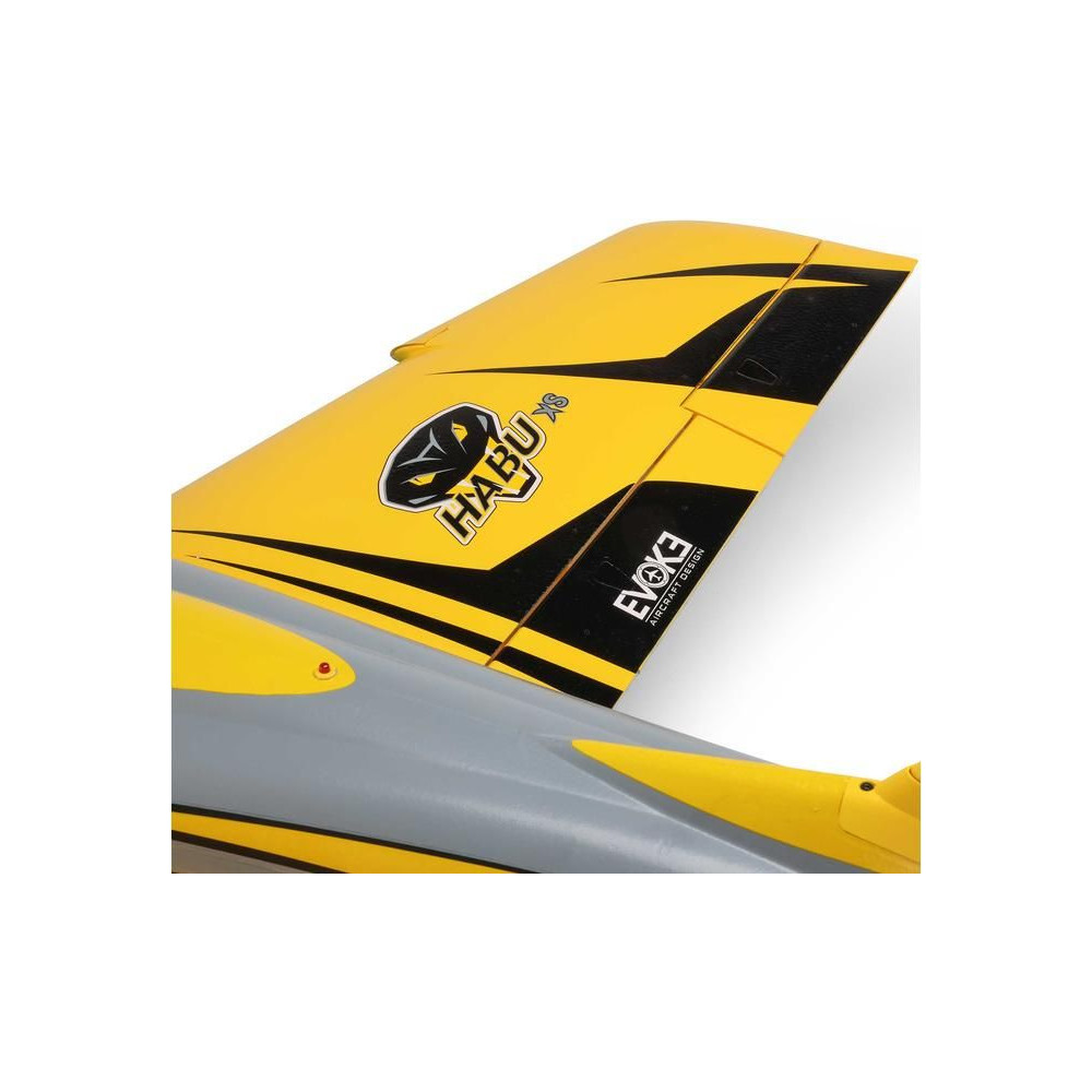 A modell lelke egy erőteljes, 12 lapátos ventilátorral ellátott fúvó, amely egy szakértők által tervezett légcsatornával együtt kiváló tolóerőt és autentikus, turbinaszerű hangzást biztosít állyukak nélkül. A Habu SX akár 190 km/h maximális sebességgel képes vízszintes repülésre, és lenyűgöző függőleges teljesítménnyel rendelkezik. Az összeszereléshez nincs szükség ragasztóra, az egy darabból álló szárnyat csavarokkal rögzítjük, akárcsak a magasságot, amelyet az irányjelzővel egy egységben szerelsz össze. Az EPO kompozit repülőgéptörzs elkészült, ahogy az összes alkatrész is minőségi festéssel rendelkezik. A nagy felső fedél megkönnyíti az akkumulátor behelyezését, és a műanyag peremmel nem sérül. Nyolc gyárilag beépített digitális szervomotor csatlakozik gömbcsuklós kormánykarokhoz az éles és precíz vezérlés érdekében. A behúzható alváz fokozza a hitelességet és csökkenti a légellenállást. Ezenkívül csillapító rendszerrel is fel van szerelve, így könnyedén repülhetsz vele fűből és más felületekről is.