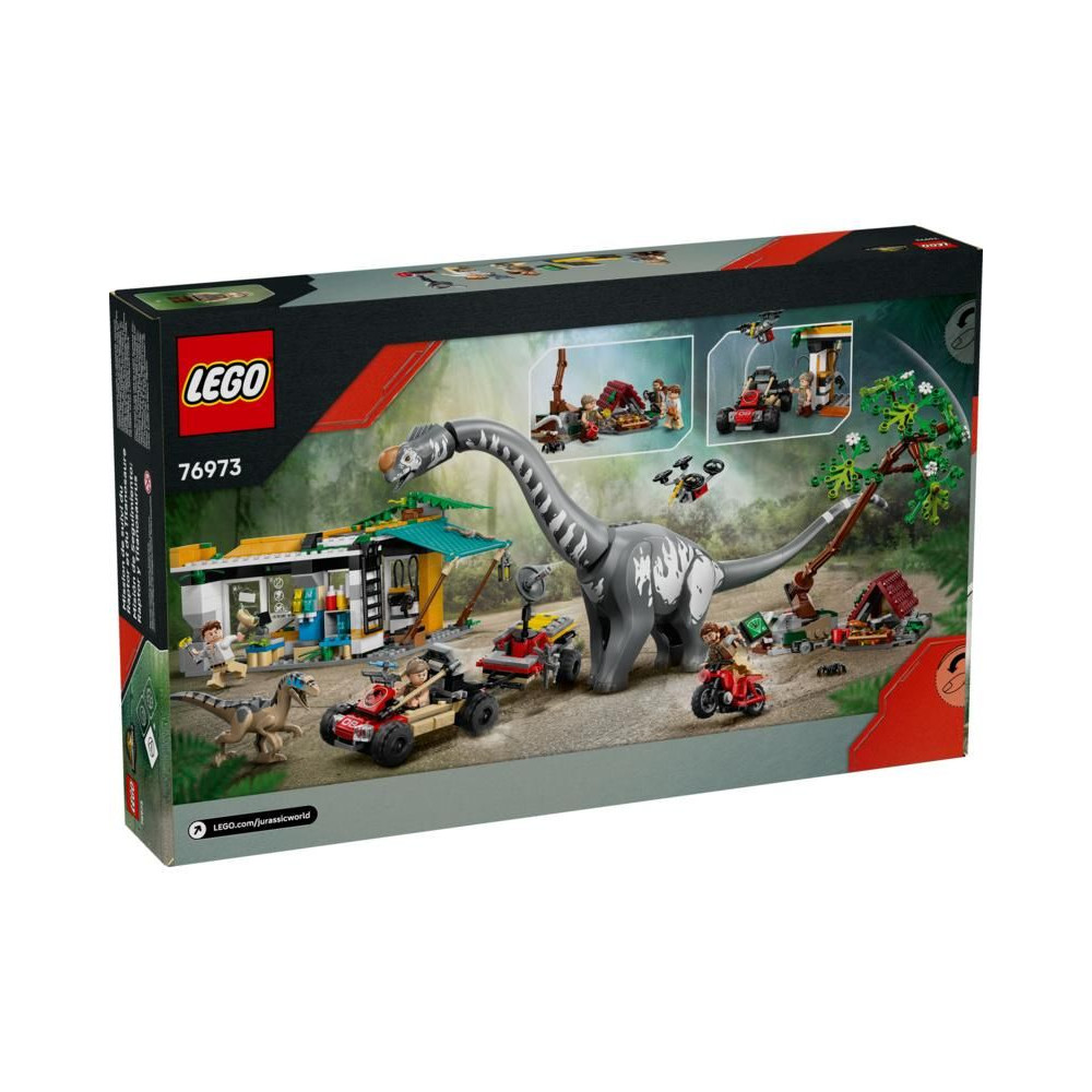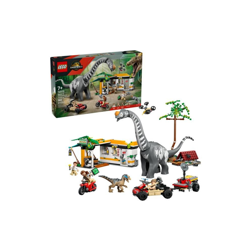 A 7 éves kortól induló filmrajongók izgalmas akció-üldözésekre számíthatnak a LEGO® Jurassic World (76973) Raptor és Titanosaurus nyomkövető küldetéssel. A fiúknak és lányoknak szóló dinoszaurusz ajándék kidolgozott titanosaurus és velociraptor figurákat, valamint 3 minifigurát tartalmaz: Zora Bennettet, Martin Krebst és Dr. Henry Loomist. A Velociraptor mozgatható állkapoccsal, a Titanosaurus pedig mozgatható nyakkal, fejjel és farokkal rendelkezik. Ez az interaktív játék tartalmaz egy töltőállomást, terepjárót utánfutóval, fecskendőtartót 3 injekcióval, motorkerékpárt, összerakható drónt, kempinget kidőlő fa funkcióval és még sok minden mást.