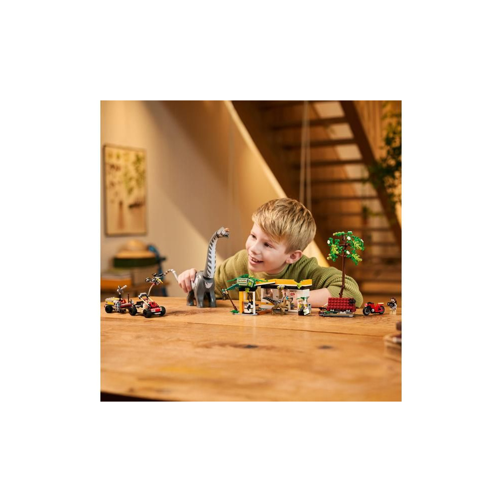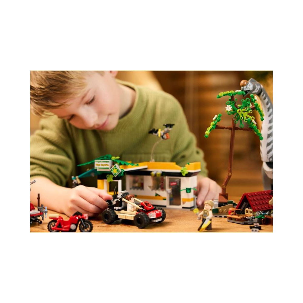 A kalandot és a dinoszaurusz játékokat kedvelő gyerekek útközben is magukkal vihetik ezt a készletet. Az építőkészlet más LEGO Jurassic World készletekkel is kombinálható (külön megvásárolhatók). A LEGO Builder alkalmazás egy intuitív építési kalandon kalauzolja el a kis rajongókat, amely lehetővé teszi számukra, hogy 3D-ben nagyítsanak és forgatsák a modelleket, mentsék az építőelemeket és figyelemmel kísérjék az építési folyamatot. A készlet 582 alkatrészt tartalmaz.