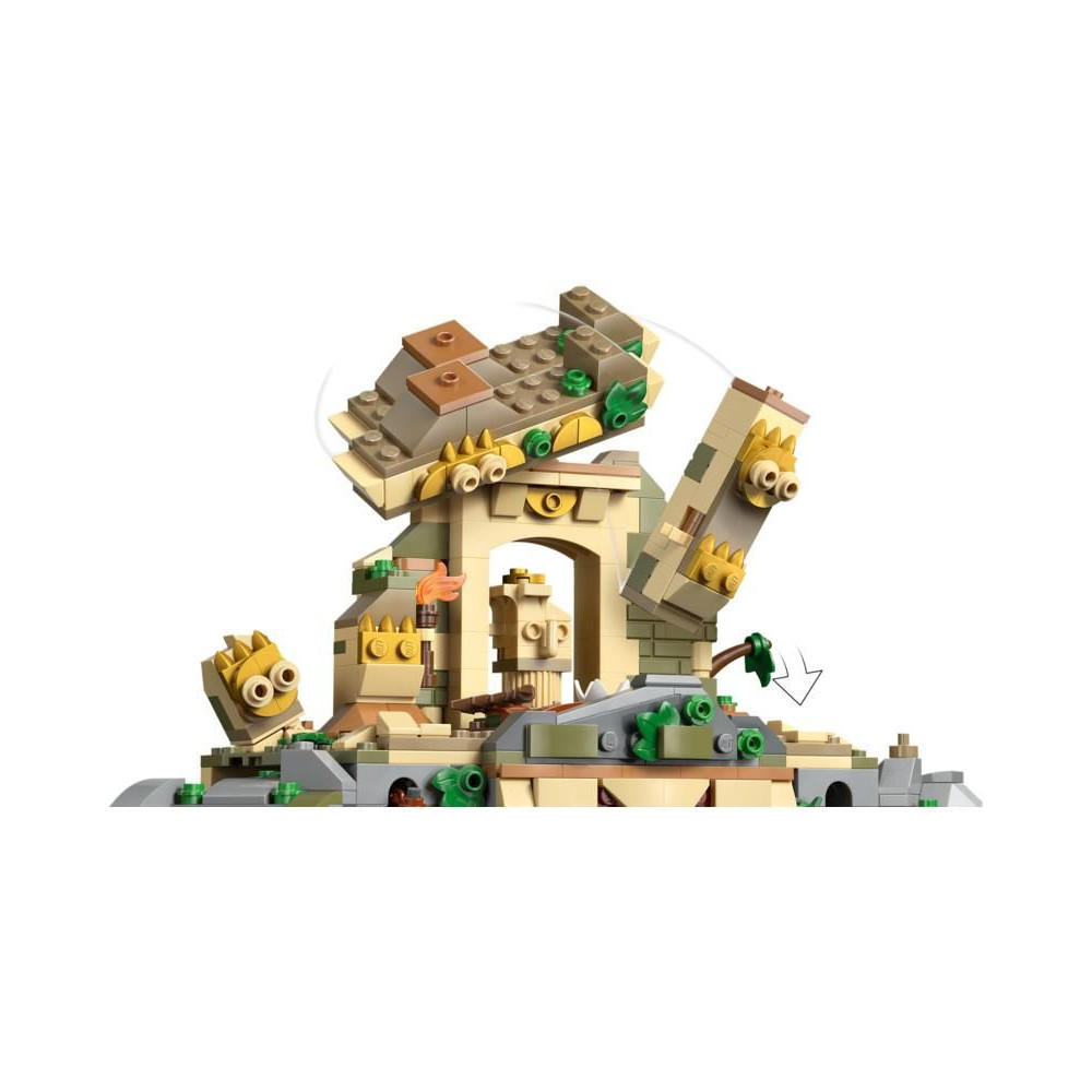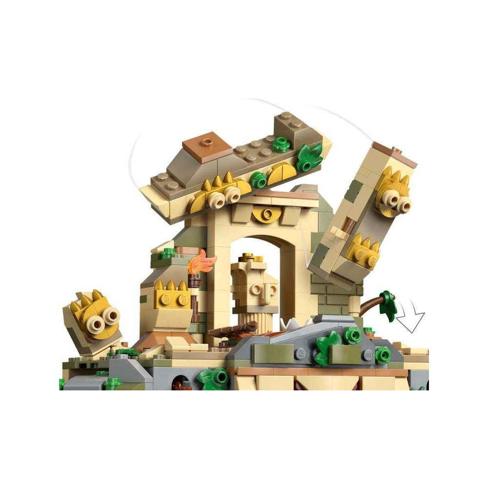 - Fedezz fel rengeteg funkciót – A dinoszaurusz figurák mozgatható végtagokkal és állkapoccsal rendelkeznek, a templom oszlopai lerombolhatók, egy vízesés kinyitható, és a templom falán lévő lánc meghúzásával csapda aktiválható.