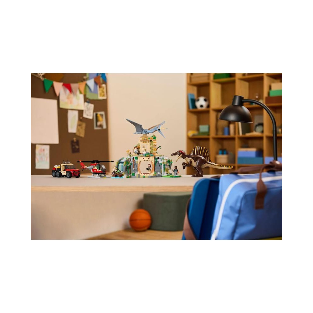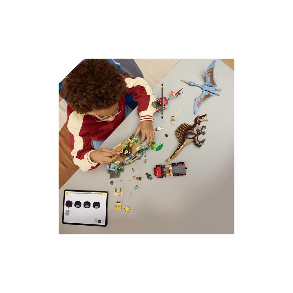 A 8 éves kortól kezdődő gyermekek és rajongók izgatottan várhatják a dinoszauruszos kalandot az interaktív LEGO® Jurassic World (76976) Spinosaurus és Quetzalcoatl küldetéskészlettel. Ez a Jurassic World: Újjászületés ihlette dinoszaurusz ajándék fiúknak és lányoknak 2 dinoszaurusz figurát és 4 filmszereplőt tartalmaz: Martin Krebst, Zora Bennettet, Duncan Kincaidot és Dr. Henry Loomist. A Spinosaurus mozgatható lábakkal, karokkal, farokkal, fejjel és állkapoccsal rendelkezik. A Quetzalcoatlus mozgatható szárnyakkal és állkapoccsal rendelkezik. A készlet tartalmaz egy ősi templomot vízeséssel, egy csapdát leeső baltákkal, omladozó oszlopokat, egy fészket és tojásokat. Van még egy helikopter, egy teherautó, fecskendőtartó, 3 fecskendő és sok más elem is.