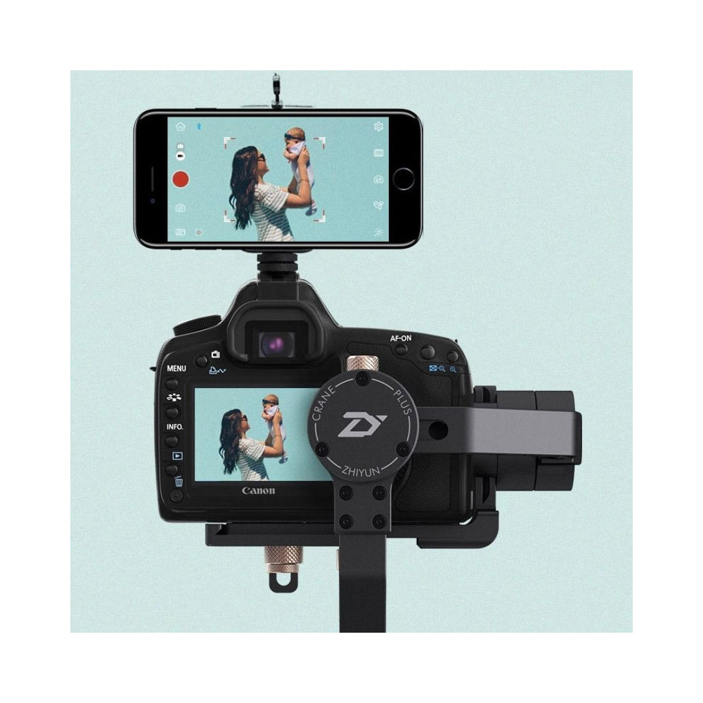 Crane Plus je dodávaný s káblom na prepojenie kamery, ktorý realizuje synchrónne ovládanie fotoaparátu aj stabilizátora, ako je fotografovanie alebo zoomovanie. V kombinácii s mobilnou aplikáciou ZY Play, Crane Plus pomáha realizovať rôzne pokročilé metódy fotenia ako timelaps a panorama len za použita vášho prsta.