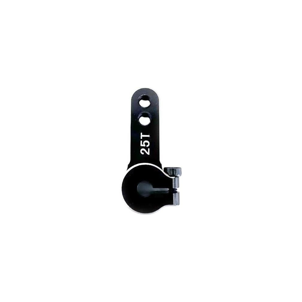A H-SPEED egyoldalas szervokar kiváló minőségű 7075-T6 alumíniumból készült, ami kiváló szilárdságot biztosít. Fekete eloxált. Két rögzítési pozíciót kínál, a furatok 15 mm és 19 mm távolságra vannak a középponttól. Milliéderes 25T.