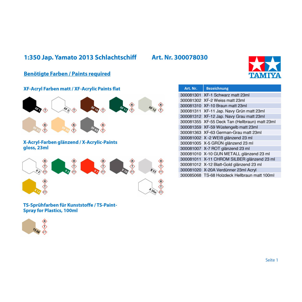 Tamiya 78030 Yamato japán csatahajó 1/350