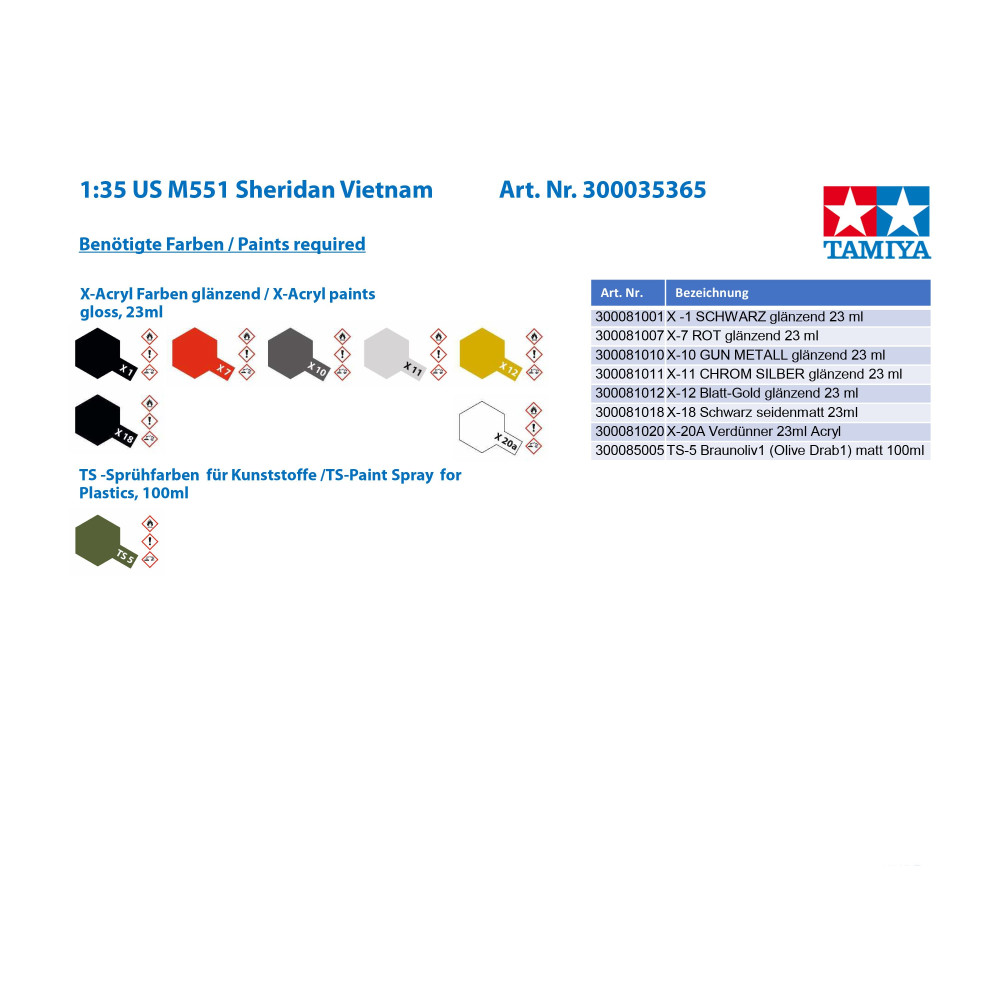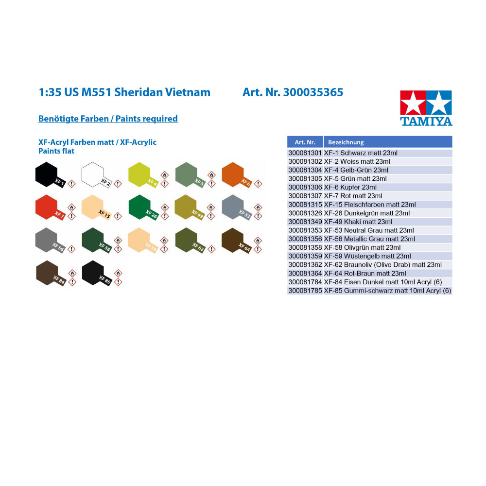 Ez egy 1/35 méretarányú műanyag modellkészlet az M551 Sheridan-ról. Hossz: 185 mm, szélesség: 80 mm.