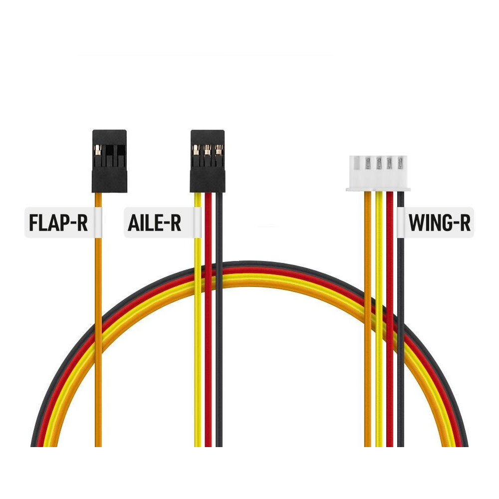 Egy pár redukáló szilikon kábel a bal és jobb oldali csűrők és fékszárnyak külön csatornákhoz való csatlakoztatására, azok pontos középponti és kitérési beállítására szolgál, lehetővé téve keverékek használatát 4 fékszárnyú szárnyakhoz. Csomagolás jobb és bal szárnyhoz. A KAV02.8091.9 cikkszámú termék cseréje.