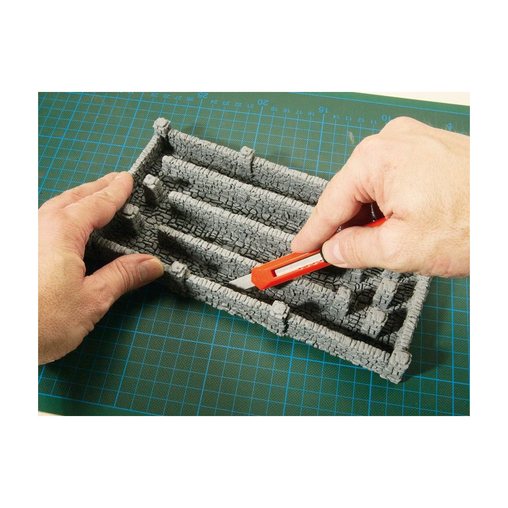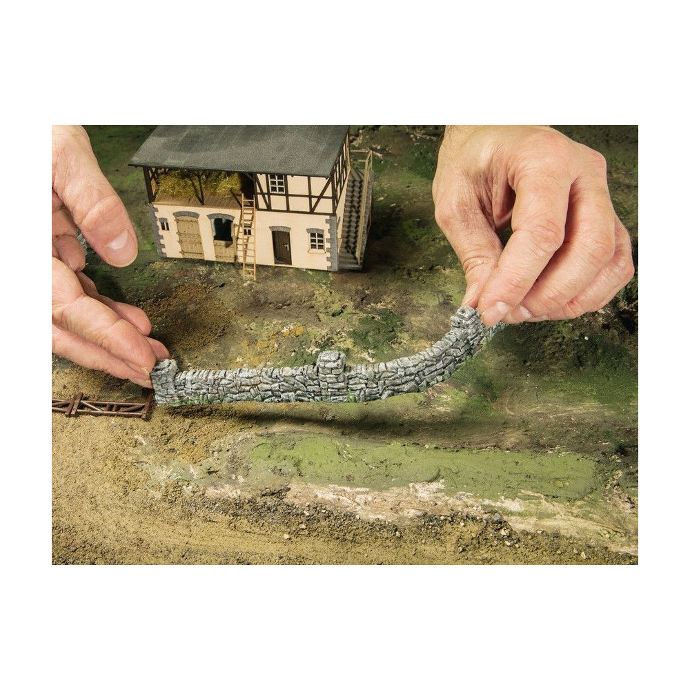 Múr z tvrdenej peny je ľahký, po nahriatí fénom ohybný, je možné ho pilovať jemnou pílkou.