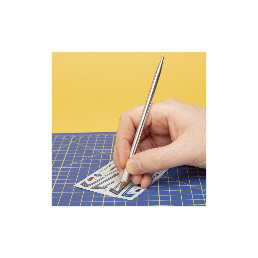 Modelcraft kis modellező kés vésővel és pengével méret #1. Ez az univerzális szerszám egyik oldalán egy kés van pengével, a másik oldalán pedig egy rajzolótűvel.