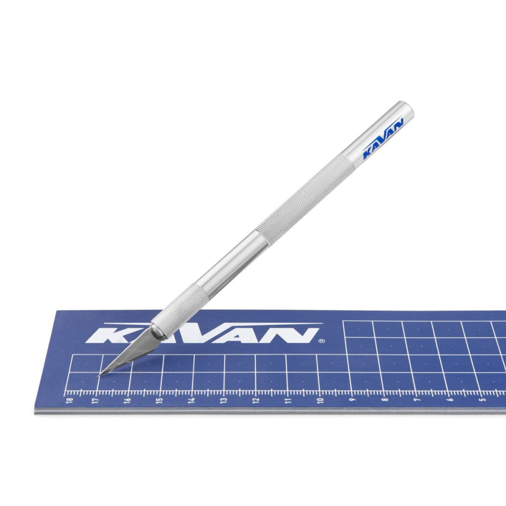 Minőségi KAVAN kés vágóalátéttel. Tartalmaz tartalék pengekészletet is.