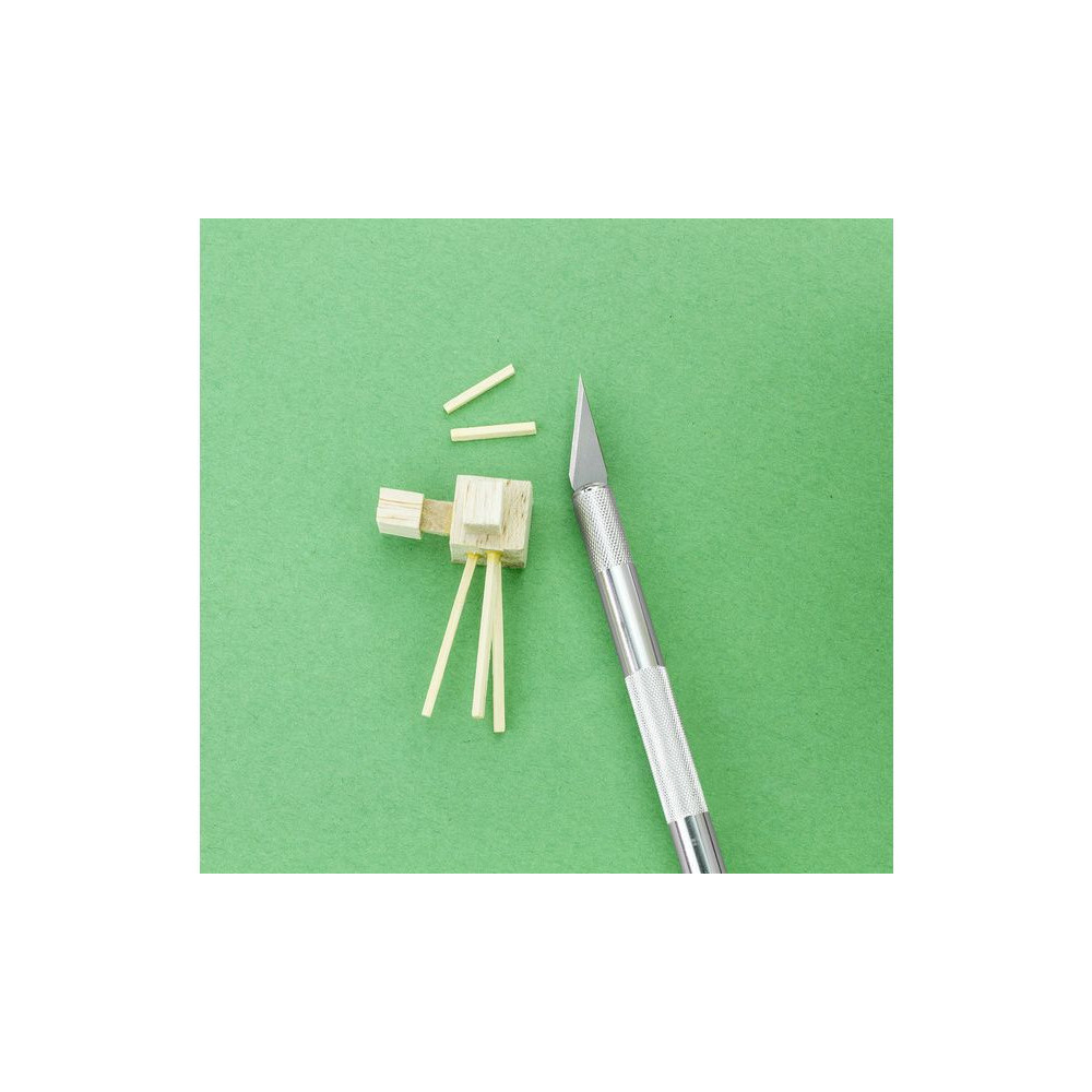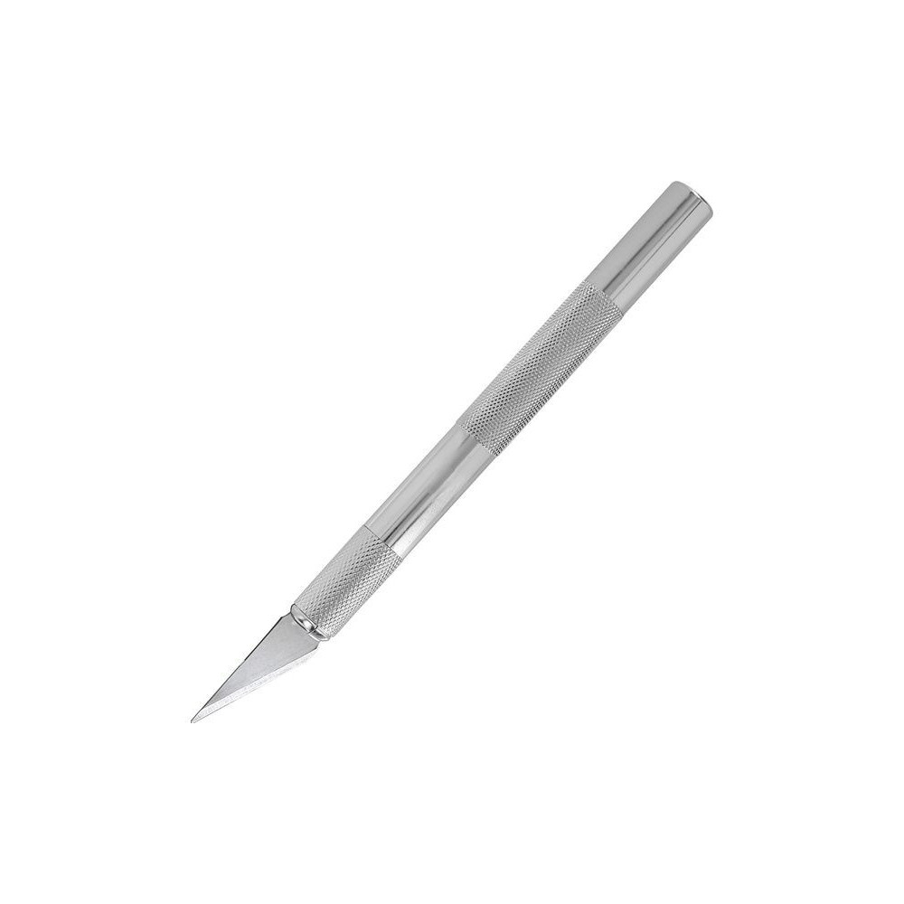 Modelcraft közepes méretű #2-es modellező kés #2-es pengével. 125 mm hosszú alumínium nyéllel. Ideális szűk helyeken való munkához, amikor fával, műanyaggal vagy papírral dolgozol. Teljes hossza 149mm, átmérője 11mm, súlya 28g.