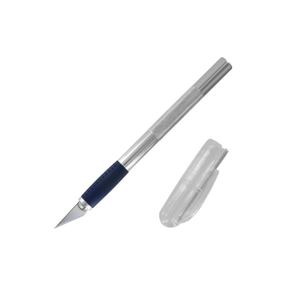 Modelcraft professzionális modellező kés kis méret #1, pengével #11. 125 mm-es alumínium nyéllel. Ideális szűk helyeken való munkához, amikor fával, műanyaggal vagy papírral dolgozol. Teljes hossza 155mm, átmérője 15mm, súlya 24g.
