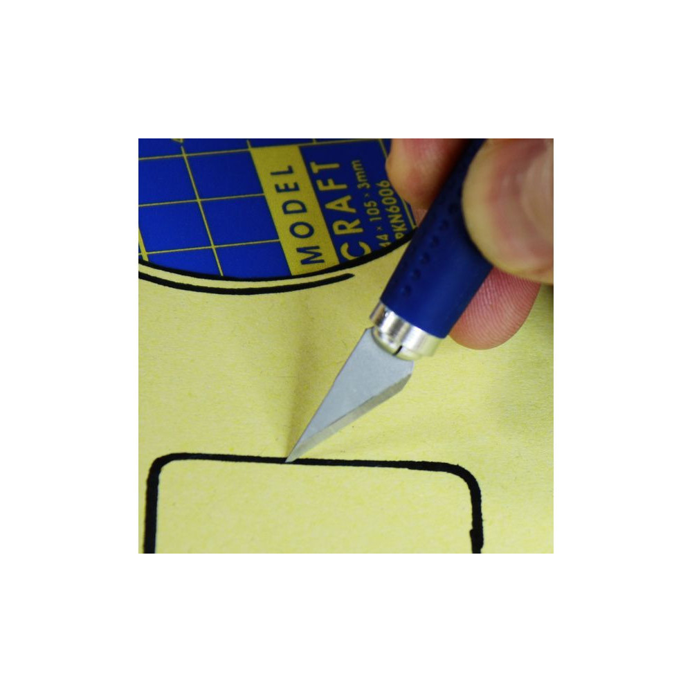 Modelcraft professzionális modellező kés kis méret #1, pengével #11. 125mm hosszú alumínium nyéllel. Ideális szűk helyeken való munkához, amikor fával, műanyaggal vagy papírral dolgozol. Teljes hossza 155mm, átmérője 15mm, súlya 24g.