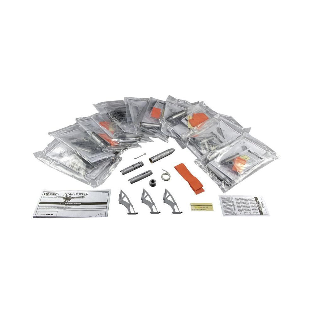 Csodálatos alkatrészkészlet tizenkét Star Hopper rakéta megépítéséhez, amely nem hiányozhat egyetlen rakétamérnök gyűjteményéből sem. Nagyon jól fogsz szórakozni ezekkel a közel 19 cm magas rakétákkal. Minden rakétához tartozik egy szalag formájában lévő visszatérítő eszköz, amely biztosítja, hogy minden rakéta biztonságosan földet érjen.