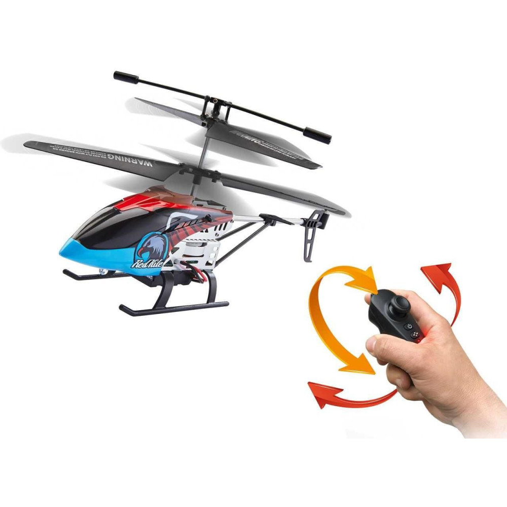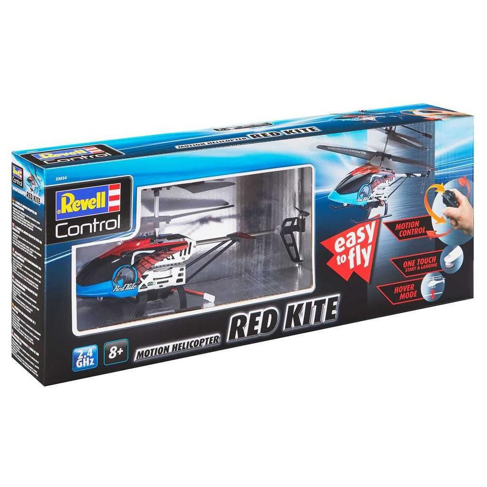 Teljesen irányítható! Az egyedülálló Motion Control távirányítónak köszönhetően ezt a helikoptert a levegőben egy egyszerű kézmozdulattal nagyon pontosan irányíthatod. Csak nyomj meg egy gombot a praktikus 2,4 GHz-es vezérlőn, és a Red Kite felszáll, és a magasságszabályozásnak köszönhetően előre meghatározott magasságba repül. Balra vagy jobbra, fel vagy le - a Red Kite mostantól minden kézmozdulatodra figyel. A cserélhető Lipo akkumulátor könnyen feltölthető USB kábelen keresztül (tartozék), és körülbelül 30 perc után készen áll a további használatra. LED-es világítással is rendelkezik. A 24 cm-es hosszával és intuitív vezérlésével ez a modell kiváló otthoni helikopter kezdőknek 8 éves kortól.