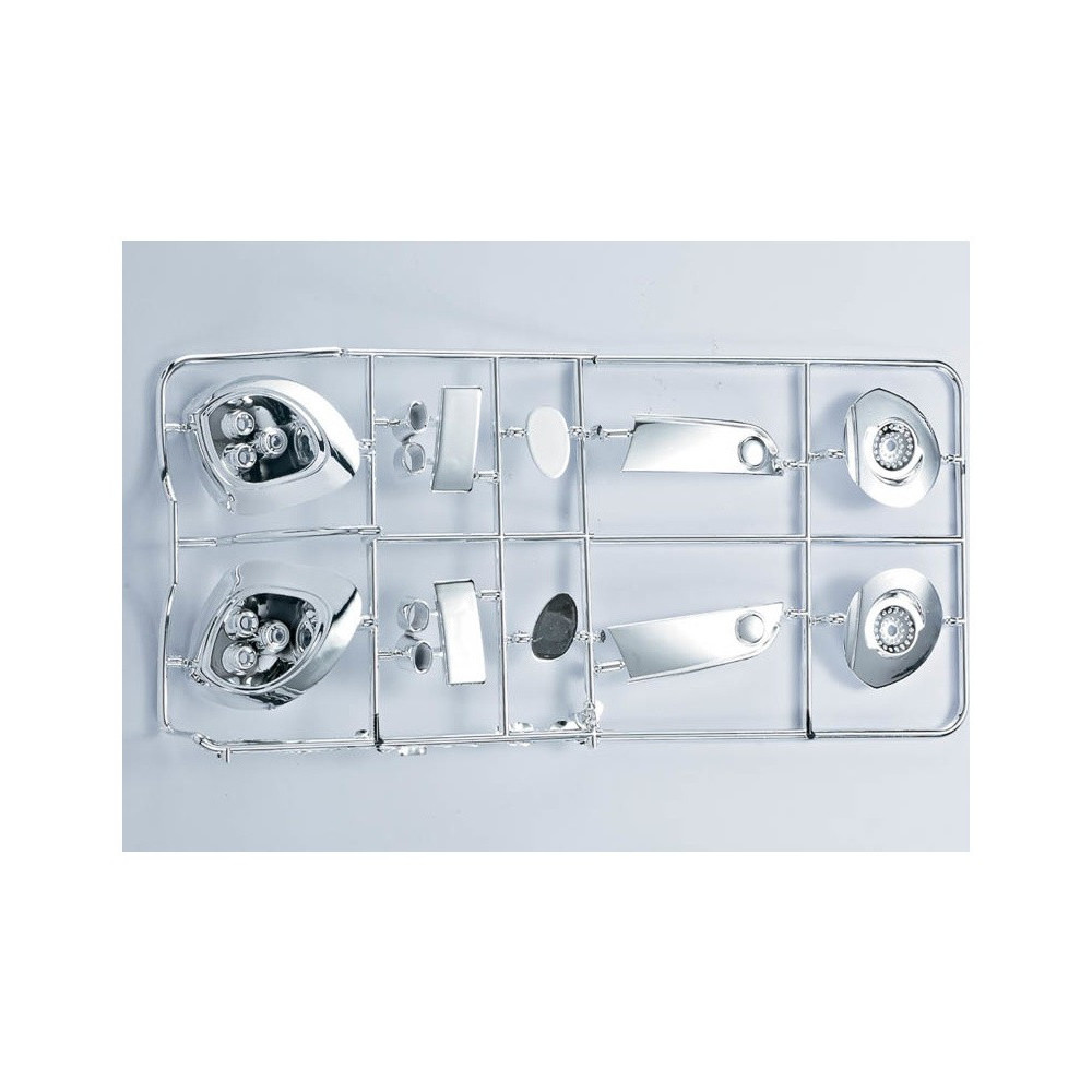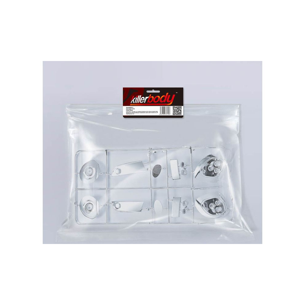Kiegészítő 1:7 Alfa Romeo 8C RC modellekhez krómozott műanyag alkatrészek formájában a Killerbody-tól. A lámpabetétek készen állnak a LED világításra.