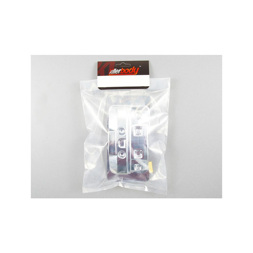 Killerbody A típusú fényszóró parabolák RC Monster 1:10-es autómodellekhez. A csomag tartalmaz krómozott műanyag fényszóró és hátsó lámpa parabolákat, ragasztószalagot.