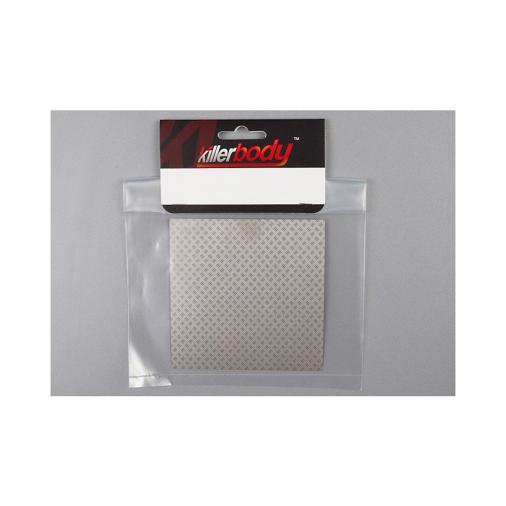 A Killerbody egy RC modellautókhoz készült csúszásmentes lemez makettjét kínálja Önnek. A lap 100 x 100 x 0,1 mm-es rozsdamentes acélból készült, ezüst színű, dizájnos futófelület alakban.