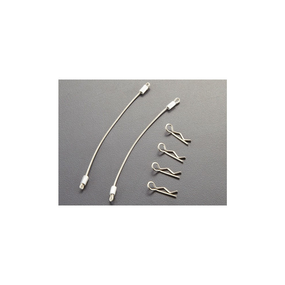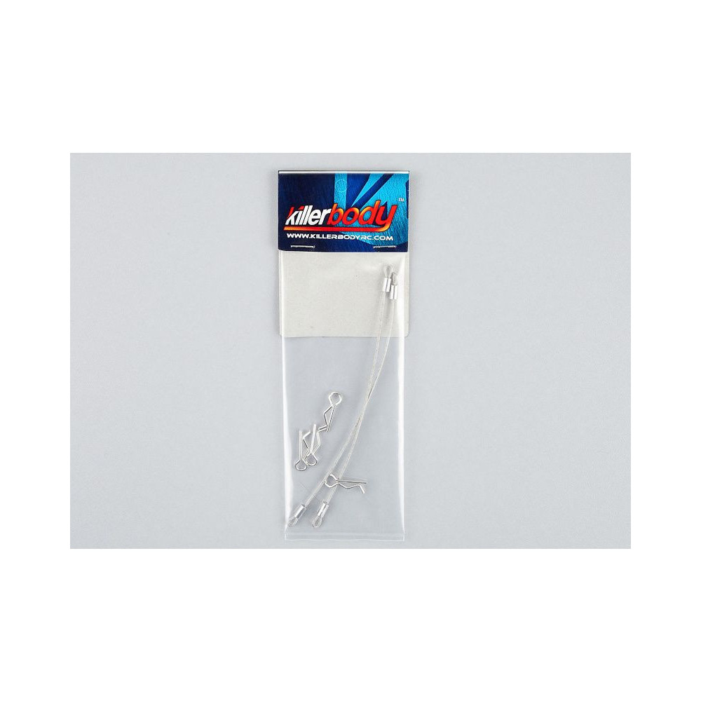 A Killerbody acélhuzalos karosszériacsipeszeket kínál RC modellautókhoz. A csomag tartalmaz 4 x kis karosszériacsipeszt, 2 x 120 mm hosszú acél drótkötelet.