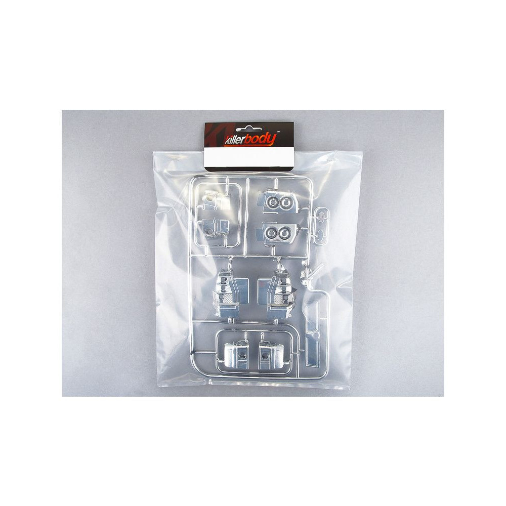 Killerbody krómozott műanyag alkatrészek Lancia Delta HF Integrale 1:10 RC modellekhez. A lámpa betétek készen állnak a LED világításra. Az alkatrészek ABS anyagból készülnek.