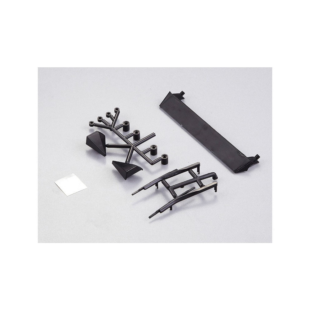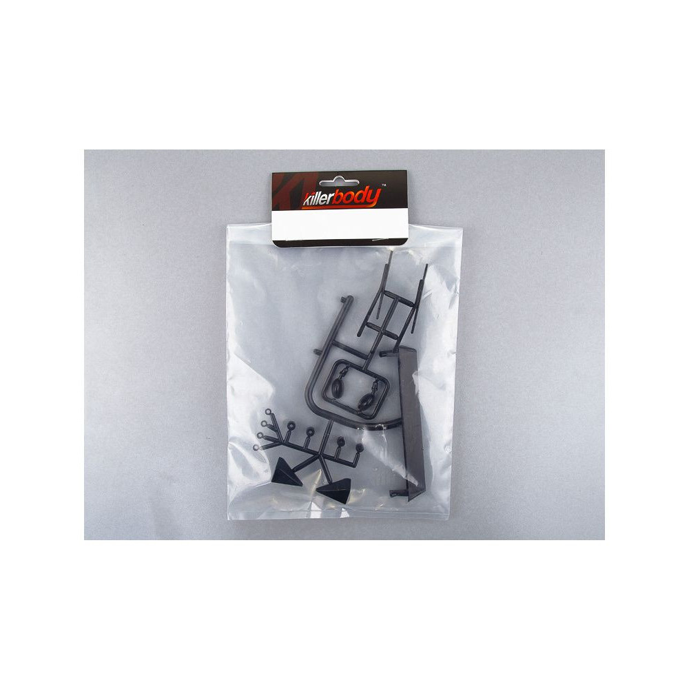 Killerbody fekete alkatrészek Lancia Delta HF Integrale 1:10 RC modellhez. Az alkatrészek tartós ABS anyagból készültek. A csomag műanyag első ablaktörlőket, visszapillantó tükröket, hátsó szárnyakat tartalmaz.