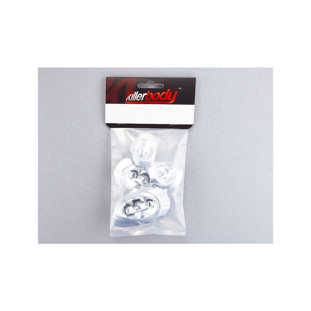 Killerbody által készített fényszóró parabolák az Alfa Romeo TZ3 Corsa 1:10 RC modellekhez. A csomag krómozott műanyag betéteket tartalmaz az első és hátsó lámpákhoz, rögzítőkészlet nélkül.