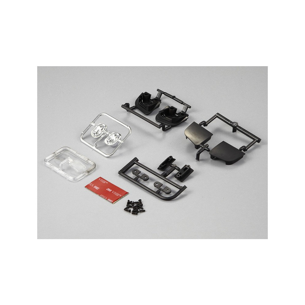 Tegye 1:10-es RC autómodelljét valósághűbbé. A Killerbody részletes, LED nélküli első nyitófényeket kínál Önnek. Az első lámpák ABS anyagból készültek, fekete színben. A csomag tartalmaz 2 lámpát, átlátszó műanyag lencsét, krómozott lámpatartályt, lámpafogast, rögzítő tartozékokat.