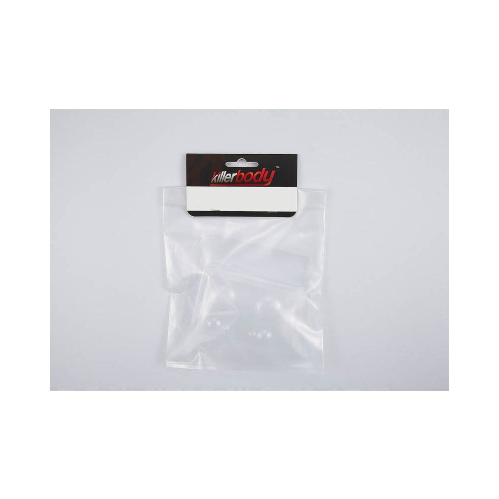 A világos fényszórófedelek a Killerbody KB48442 és KB48447 közötti Warrior 1:10-es karosszériákhoz készültek. A csomag tartalmaz egy öntvényt 2 darab átlátszó parabolával, amely a KB48449-es alkatrészhez ragasztva van. Az első borítások 21,5/27mm átmérőjűek, a hátsó borítások 12,5mm átmérőjűek, a teljes méret 16x23mm.