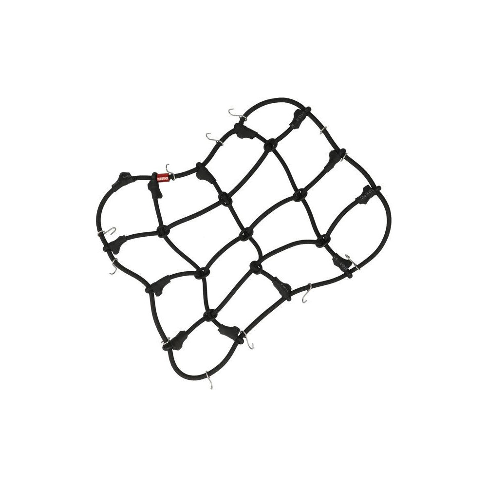 A Robitronic RC-modellautókhoz kínál kampókkal ellátott kötélhálót. Ha csomagokat vagy nehéz terheket szállít, a bilincsháló nagyszerű segítség. A háló 3 mm-es fekete kalapos gumiból van kötve, mérete 150 mm x 120 mm. Mindkét oldalán 3 kampó található a rögzítéshez.