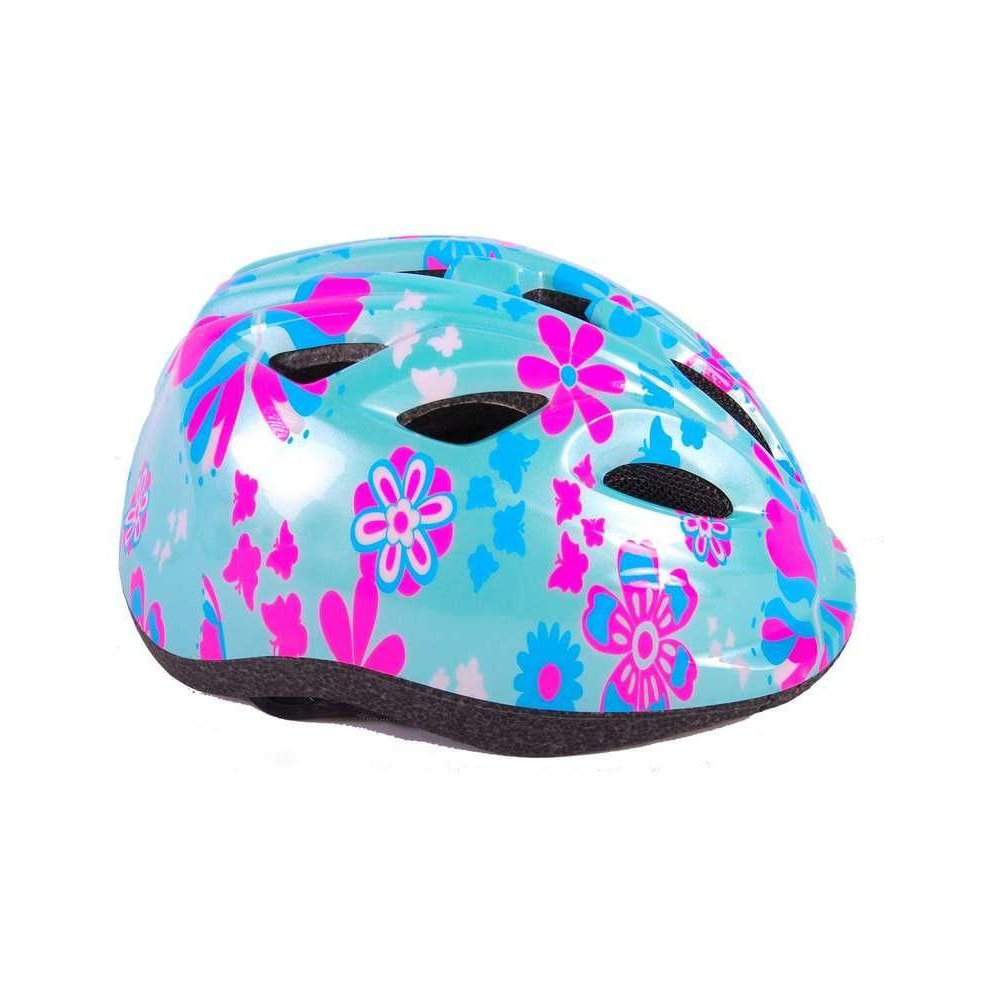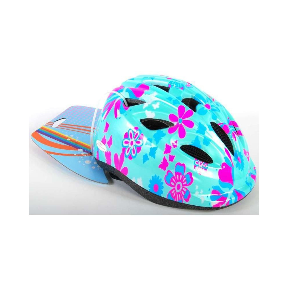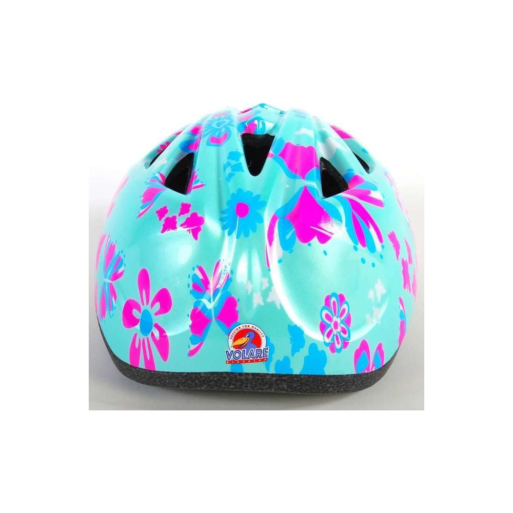 Gyermek Volare XS sisak virágmotívummal - állítható fejkörfogatra 47-51cm. Nagyon könnyű - 195 g. Megfelel a TÜV/GS követelményeknek. Állítható kerület és pánt. A rovarháló megakadályozza, hogy a rovarok kerékpározás közben bejussanak a sisakba. Alkalmas 3 éves kortól.