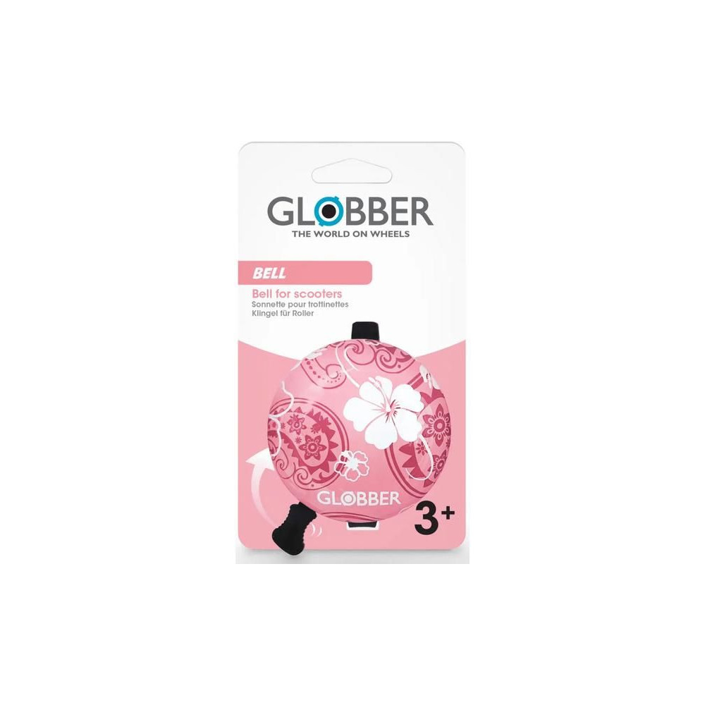 Gyermek Globber csengő kerékpár vagy roller kormányra. Lehetővé teszi, hogy a hüvelykujjával csengessen, és mindkét kezével biztonságosan fogja a kormányt. Szemet gyönyörködtető design különböző motívumokkal.