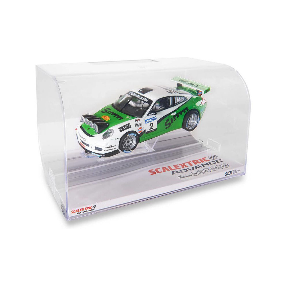 SCX Advance Porsche 911 RALLY Orriols pályaautó 1:32 méretarányban az SCX Advance digitális autópályákhoz. Az autó LED világítással van felszerelve. Az alvázon található egy digitális/analóg kapcsoló - az autó mind az SCX Advance digitális, mind az SCX Original analóg autópályákon használható.