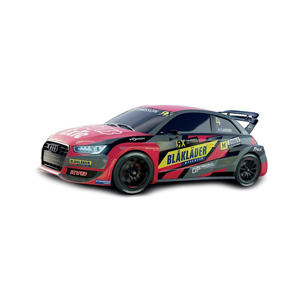 Pályaautó SCX Advance Audi S1 RX - Blaklader 1:32 méretarányban, 2.0 verzió, SCX Advance digitális autópályákhoz. Az autó LED világítással van felszerelve. Az alvázon található egy digitális/analóg kapcsoló - az autó mind az SCX Advance digitális, mind az SCX Original analóg versenypályákon használható.