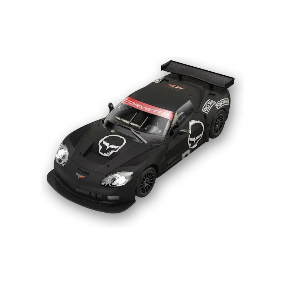 Pályaautó SCX Original Corvette C6R Skull 1:32 méretarányban, világítással, SCX Original analóg autópályákhoz. Ha hozzáadod az SCX Advance Conversion Kit Type A - Long SCXE10405X200 típusú átalakító készletet, akkor az autót az Advance autópályához is használhatod.