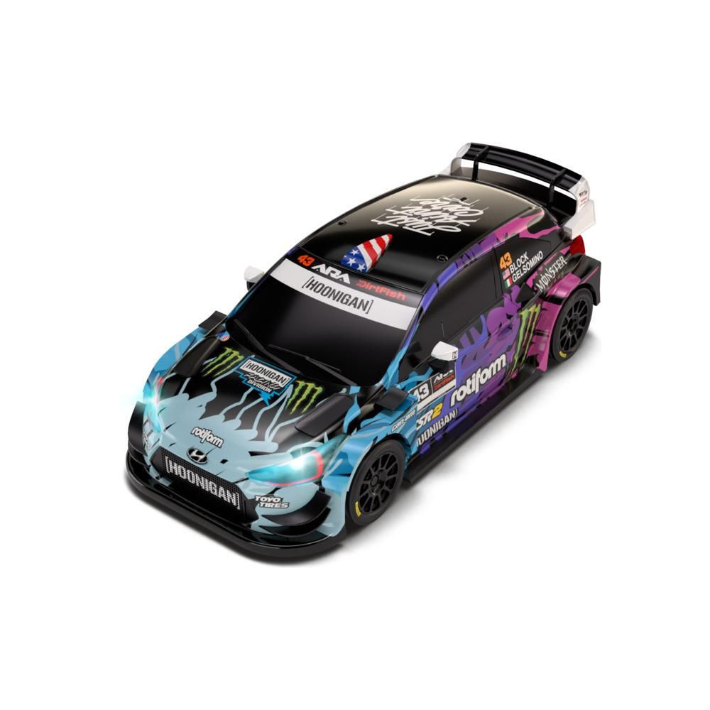 Pályaautó SCX Compact Hyundai i-20 WRC 100 Acres Wood 1:43 méretarányban az SCX Compact számára. Az autó LED-es lámpákkal van felszerelve.