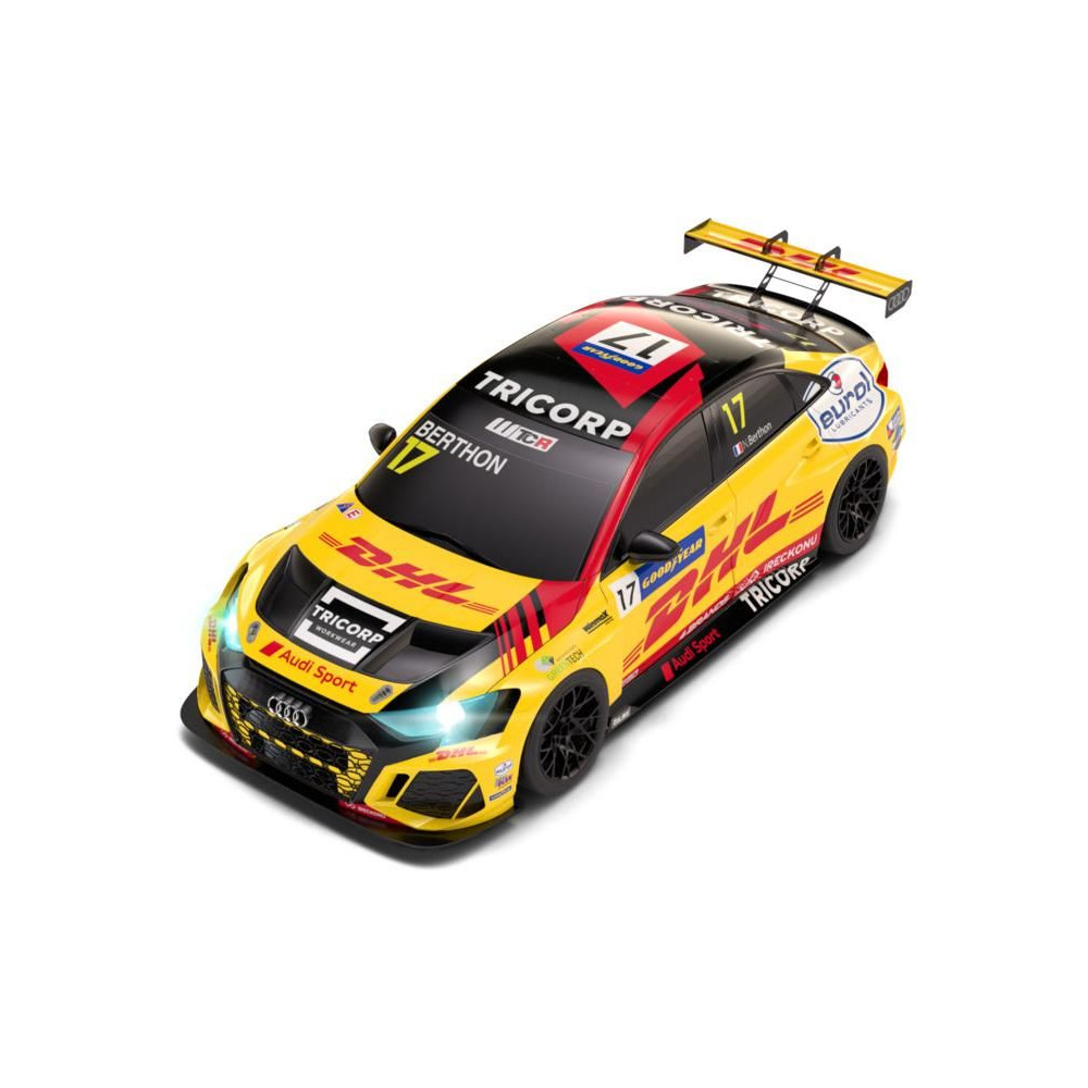 Pályaautó SCX Original Audi RS3 LMS TCR DHL 1:32 méretarányban, SCX Original analóg autópályákhoz. Az autó LED-es lámpákkal van felszerelve.