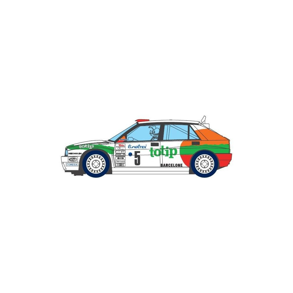 Pályaautó SCX Original Lancia Delta Integrale Totip 1:32 méretarányban, világítással, SCX Original analóg autópályákhoz. Ha hozzáadod az SCX Advance átalakító készletet Type A - Long SCXE10405X200, akkor az autót az Advance autópályához is használhatod.
