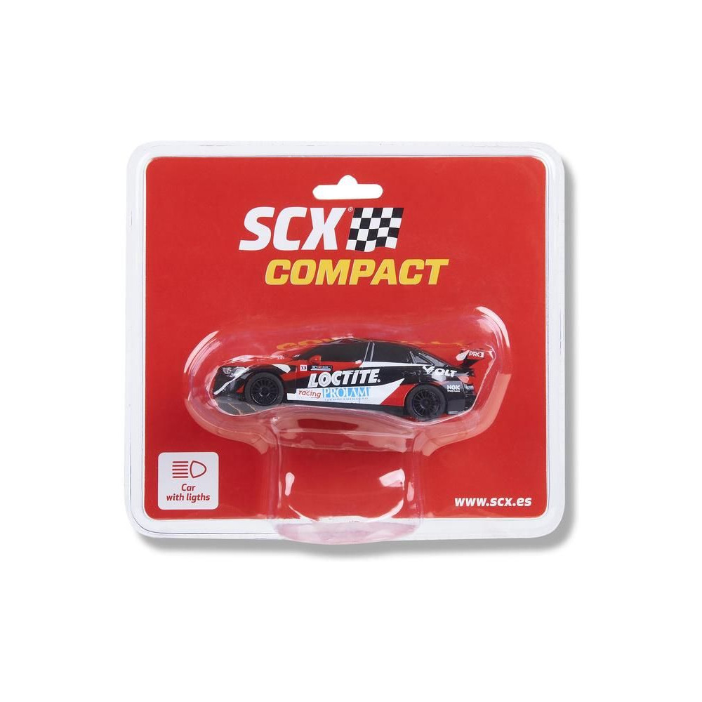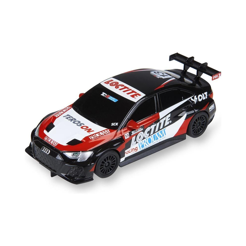SCX Compact pályaautó Audi RS3 LMS TCR - Coronel 1:43 méretarányban, SCX Compact pályákra. A játékautó LED lámpákkal van felszerelve.