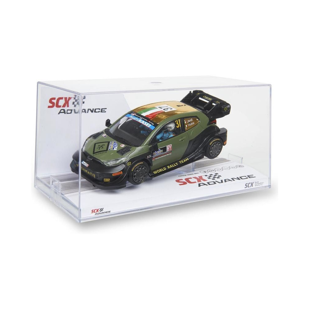 SCX Advance Toyota Yaris WRC Bertelli pályaautó 1:32 méretarányban, 2.0 verzióban, SCX Advance digitális pályákhoz. A játékautó LED világítással van felszerelve. Az alvázon digitális/analóg kapcsoló található - a játékautó így a digitális SCX Advance pályán és az SCX Classic analóg pályán is használható. A játékautó 4x4-es meghajtással rendelkezik.