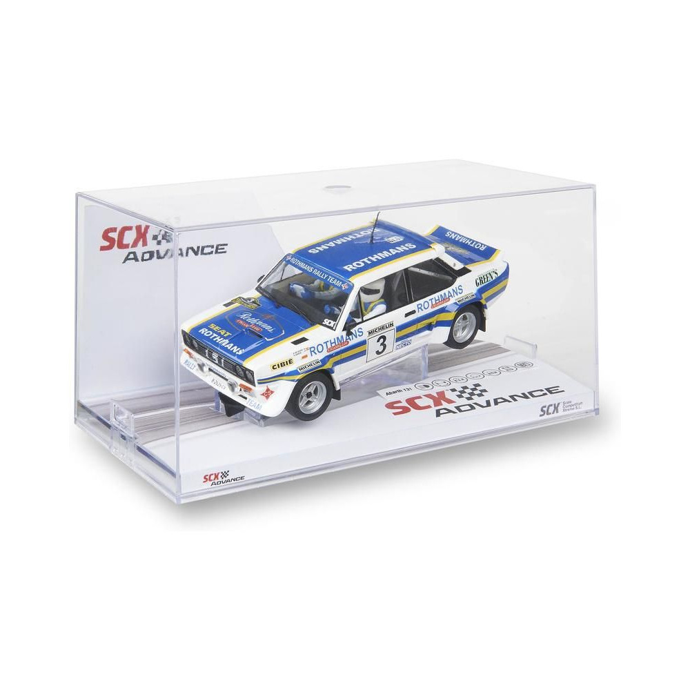 SCX Advance Abarth 131 Talavera 82 pályás autó 1:32 méretarányban, 2.0 verzióban, SCX Advance digitális pályákhoz. A játékautó LED világítással van felszerelve. Az alvázon digitális/analóg kapcsoló található - a játékautó így a digitális SCX Advance pályán és az SCX Classic analóg pályán is használható.