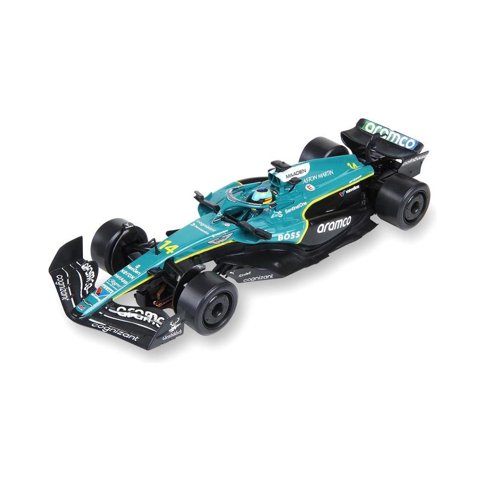 SCX Classic pályaautó Aston Martin Formula 1 - Alonso 2025 1:32 méretarányban, SCX Classic analóg pályákra. Forgó első kerekek.