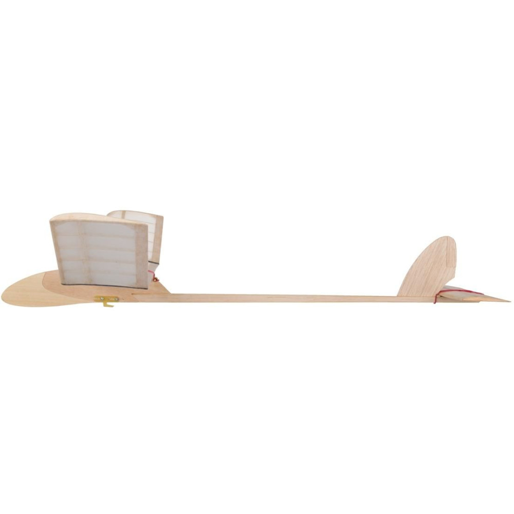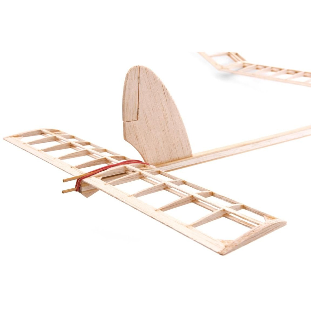 A készlet tartalma: a törzs, a szárny és a farokrészek kivágott és előre csiszolt balsafa részei, lucfenyő gerendák, csiszolópapír, előtét, fehér Vlies fedőszövet, gumi a szárny rögzítéséhez, állítható oldalsó kampó, matricalap, 1:1 méretarányú építési tervrajz és részletes útmutató.