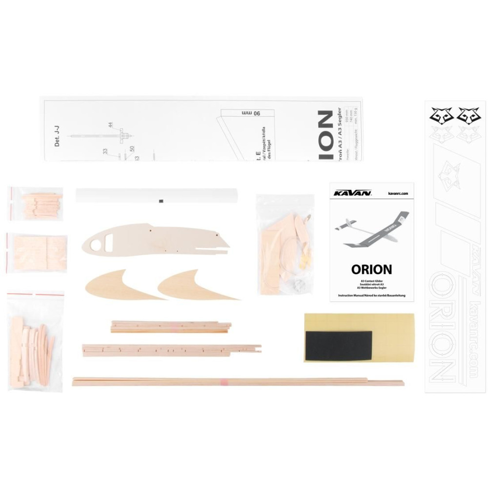 A3 kategóriájú vitorlázó repülőgép papírral borított szerkezeti tartófelületekkel. Az Orion egy egyszerű, de erőteljes modell ívelt profilú szárnnyal, Kikina, Harry, Trempík, Robin vagy Kos utáni középhaladóknak, amely lehetővé teszi az alapvető modellezési készségek továbbfejlesztését. A kézből dobás mellett a modell sikeresen vontatható egy 25 m-es kábelen (szilikonkötélen) az állítható oldalsó horognak köszönhetően. Az Orionnal nem fogsz eltévedni az A3 kategóriás iskolai versenyeken. Ugyanígy a vele korábban születettek könnyes szemmel emlékezhetnek vissza a modellkedés kezdeteire, amik valaha a múlt század sötét középkorában történtek...