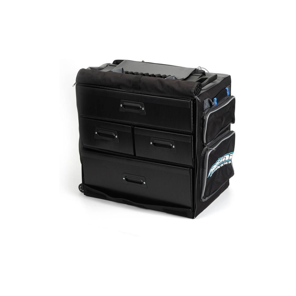 A Pro-Line Hauler táska 4 könnyen hozzáférhető fiókos rekesszel, több cipzáras zsebbel és szerszámtárolóval rendelkezik, így tökéletesen megfelel az Ön RC igényeinek. A stílusos Pro-Line logók az elején, a tetején és az oldalán feltűnnek, amikor megérkezel a versenyekre. Minőségi görgős görgők és összecsukható fogantyú. A táska most egy bungee hevedert is tartalmaz, hogy szállítás közben rögzítse RC modelljét.