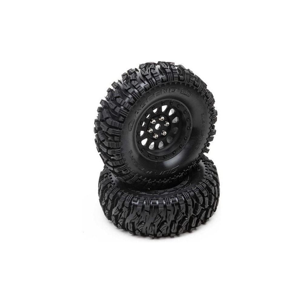 Komplett Duratrax 1,9" Class 1 Ascend CR C3 kerekek RC modellautókhoz. Tárcsaméret ⌀ 52x25 mm, teljes méret ⌀110x37 mm. A hordozó 12 mm-es hatszögletű, 12 mm-es eltolással. A tárcsa fekete színű, a gumiabroncs keménysége C3 - szuper lágy keverék.