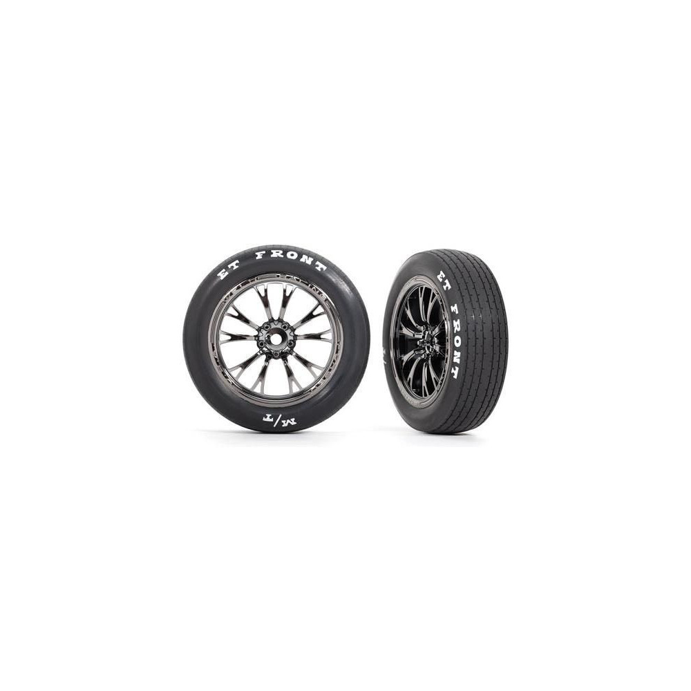 Traxxas kerék, Weld disc króm fekete (elöl) (2 db) habbetéttel és ragasztott gumival. Mickey Thompson első dragster kerekek a valódi gumik másolatai. Speciálisan összeállított gumikeverék a hosszú élettartam és a maximális tapadás érdekében.