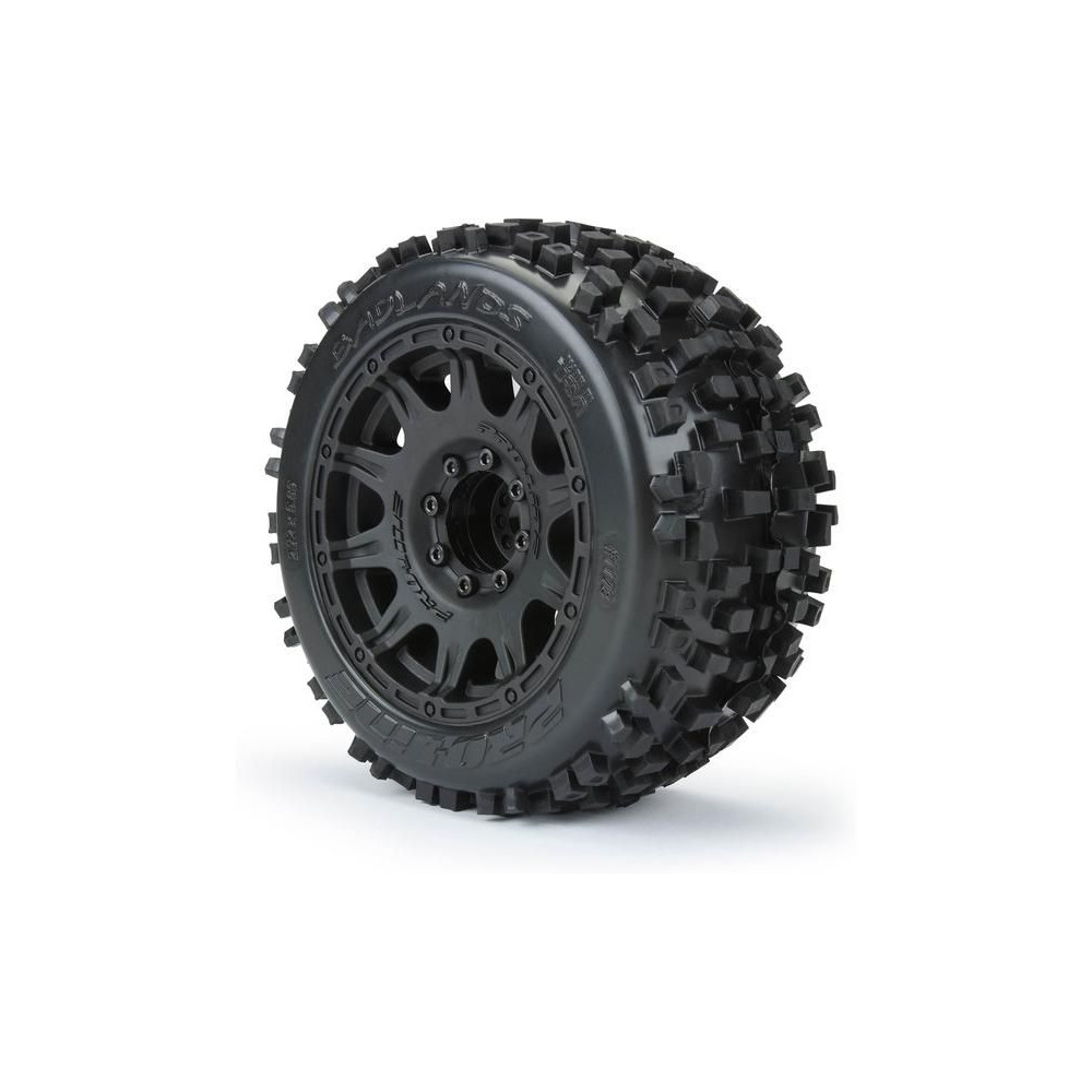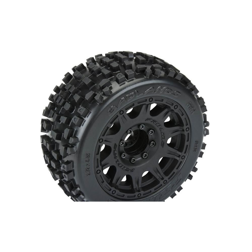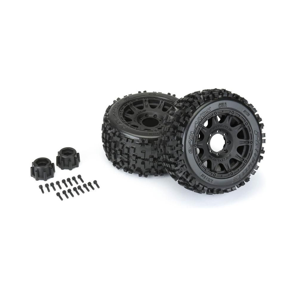 Komplett Pro-Line kerekek RC autó modellekhez 1:8. Méret ⌀149x72 mm. Raid tárcsa fekete színű. Gumiabroncsok Badlands 3.8" MT, keverék keménysége M2 (közepes). A hordozó hatszög 17 mm-es.
