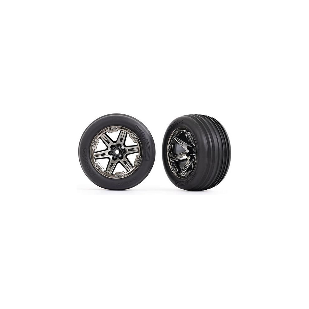 Traxxas kerék 2.8", fekete krómozott RXT tárcsa, bordázott gumiabroncs (2) (elöl)